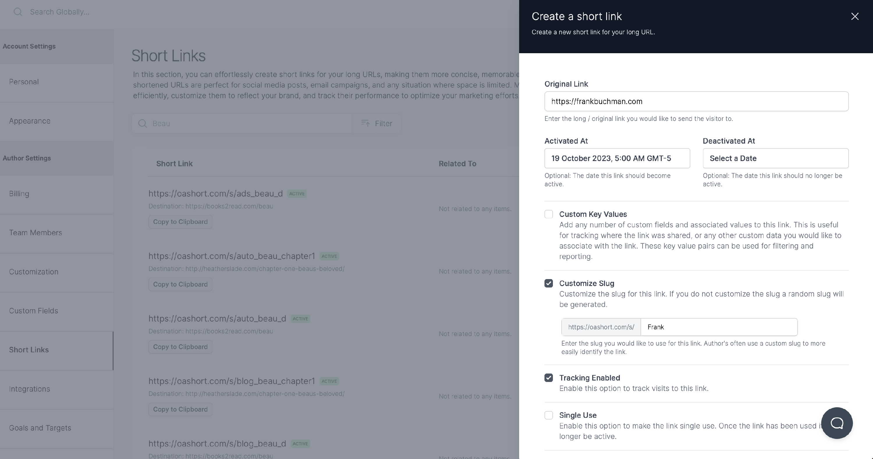 Organized Authors is excited to introduce our new feature: Short Links! Short links are online tools that transform lengthy, unwieldy URLs into concise and user-friendly versions. They come with a range of advantages, making them an invaluable addition to your author toolkit.